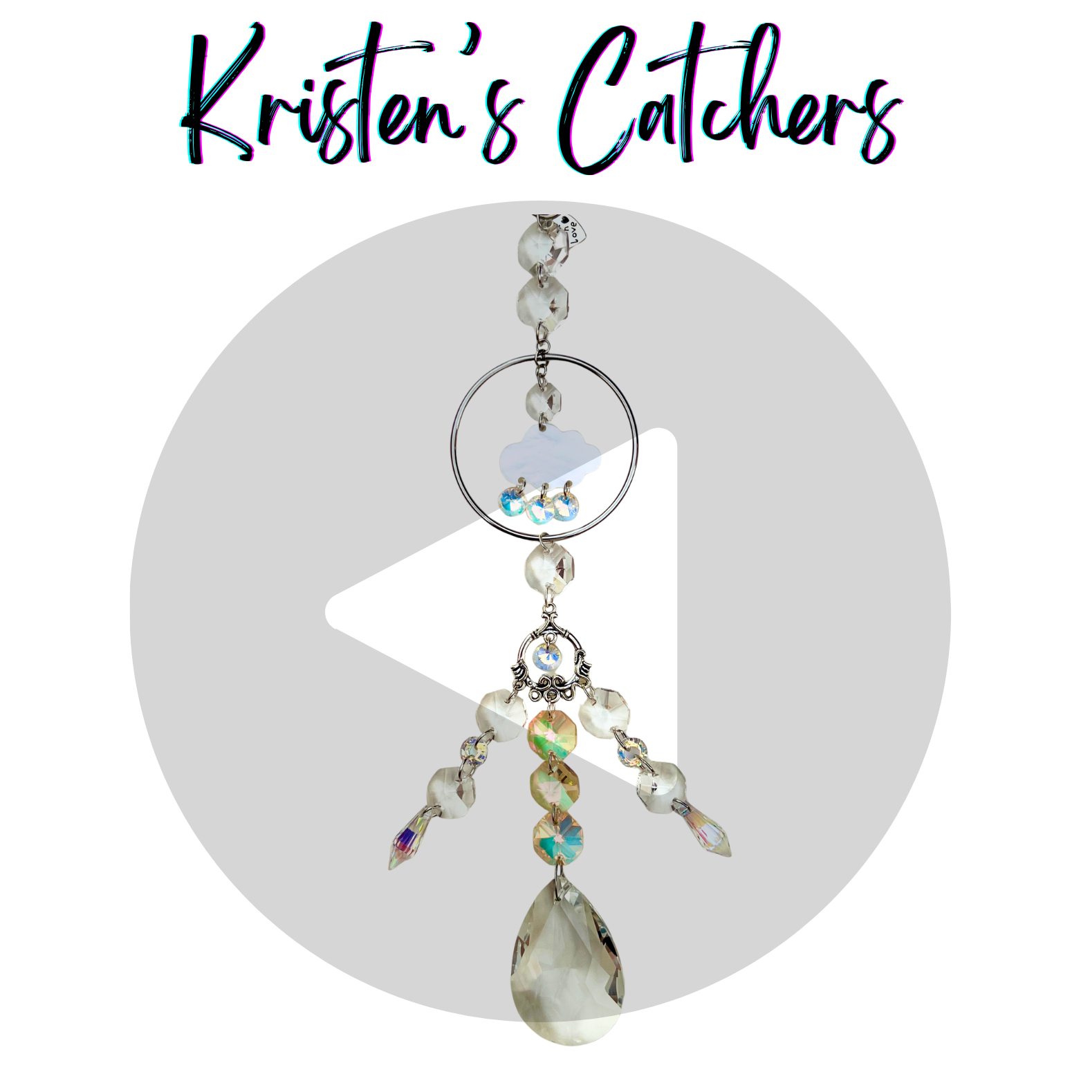 Some storms don't just rain - they crackle with electricity and light up the whole sky. This catcher captures that intense energy with a cloud raining down A/B crystals that shift colors like lightning, ending in a massive etched prism that looks like frozen electricity.